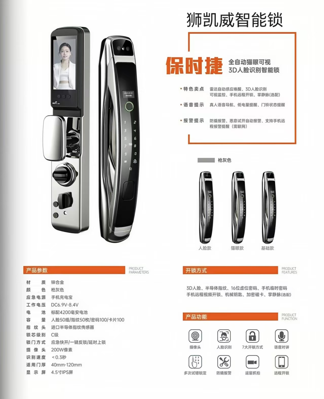 产品型号:保时捷-3D人脸识别智能锁